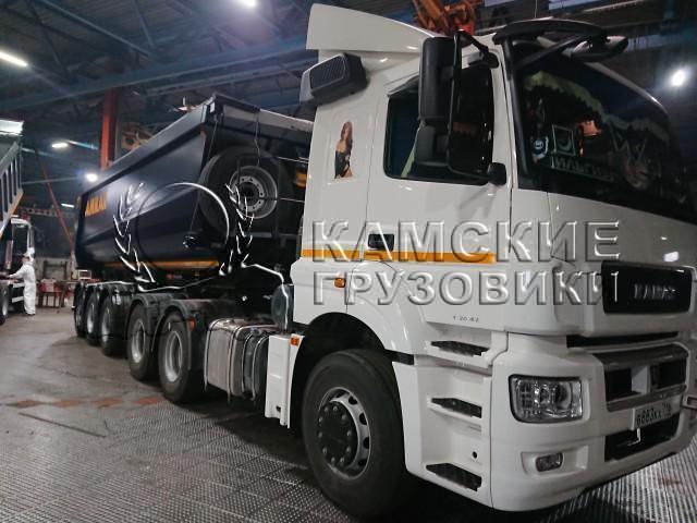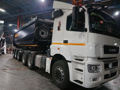 Особенности комплектации автомобиляобъем 30 куб.м., кузов овального сечения, конической формы, сталь 09Г2С, толщина днища 8 мм, толщина панелей бортов 5 мм, высота ССУ 1270 мм, гидроцилиндр "Hyva", оси CEYLAN, с подьемной осью на пневматической подвеске, EBS, цвет темно-синий, резина 385/65R22,5.