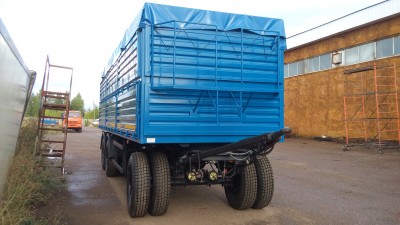 Прицеп может комплектоваться пологом с наматывающим устройством, задними распашными воротами, люком под зерномет.