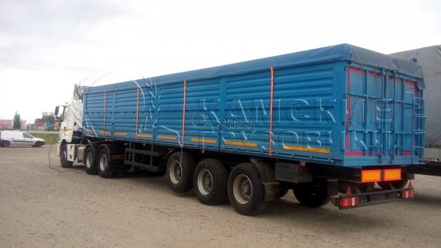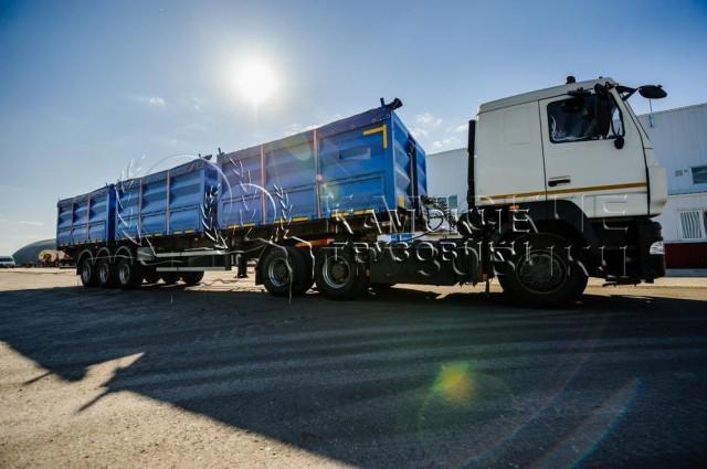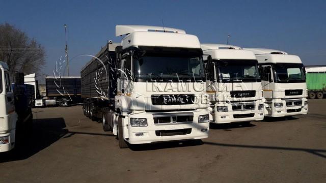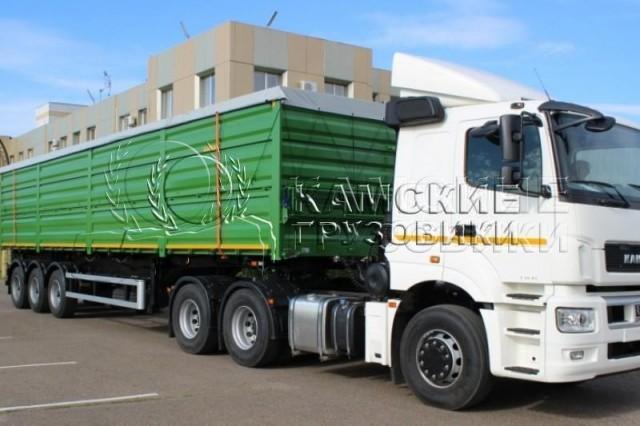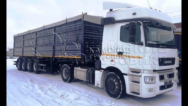 КАМАЗ 5490 Седельный тягач с полуприцепом для первозки зерна , Полуприцеп 3-х осный или 4-х осный на пневматической подвески. Грузоподъемность полуприцепа от 25000кг до 40000кг в зависимости от комплектации. Объем перврзимого груза от 45 кубов до 65 кубов в зависимости от комплектации.
