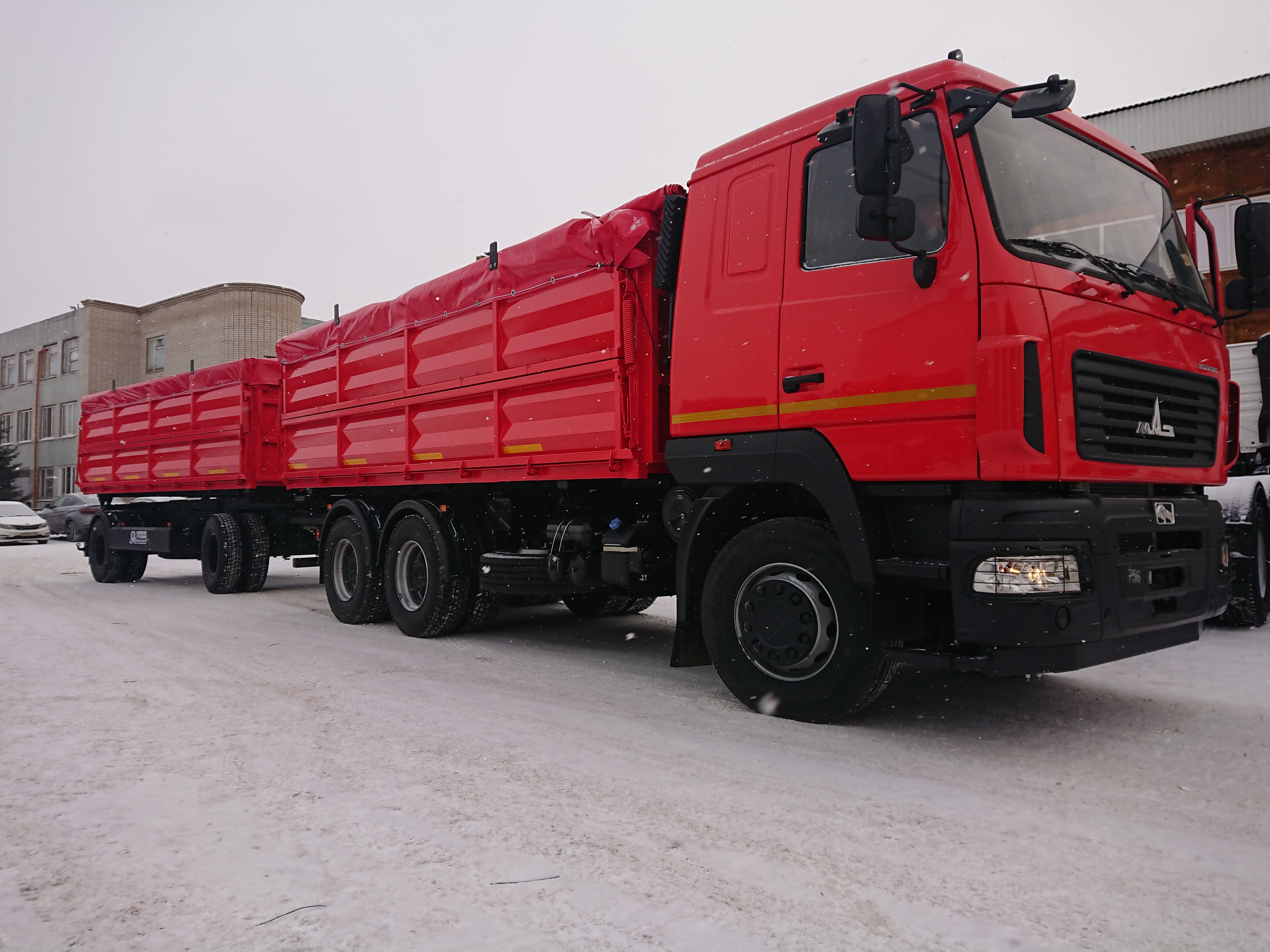 огрузка партии автопоездов сельхозников на базе шасии МАЗ 65012J