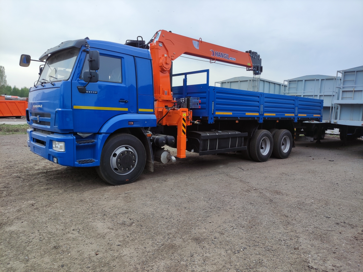 отгрузка камаз 65117 с КМУ HANGIL 756